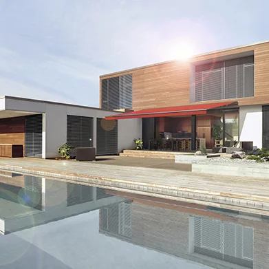 Verlassen Sie sich dank dieser Gelenkarm-Markise auch an heißen Tagen auf angenehme Kühle. Dank des integrierten Regendachs und der optionalen Tuchlagerschale ist das Tuch auch bei schlechtem Wetter rundum geschützt.